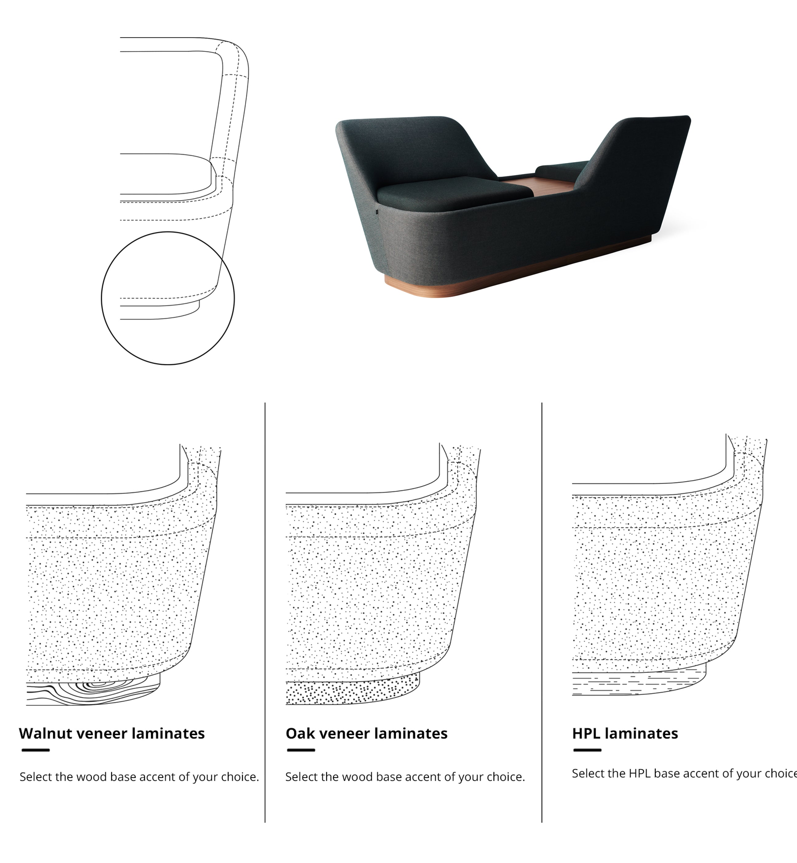 This collection allows you to mix and match endlessly, or as we say: to shuffle. Select the desired model, choose the textile, and select the base element. Complement your design with integrated tables and even the latest technologies.