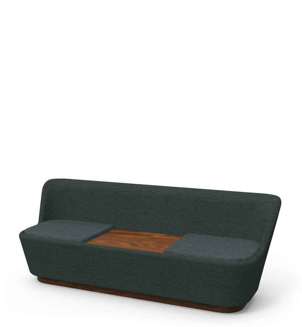 The Shuffle Two Seat Table Sofa can be made to order in your choice of fabric and wood type.