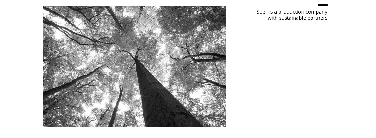 Spell is a design & production company with a deeply-rooted belief in the value of technology & sustainability. Whether we are designing a bespoke interior for an entire project or our private furniture collection, every piece of furniture we make is carefully designed for functionality, beauty and sustainability. Wood has always been a vital core material within the Spell collection. We simply love wood for its appearance, character traits and timelessness. Even as wood ages, the material does so with dignity. The passage of time improves wooden elements and structures. We are very much aware of the impact of our industry on the environment, and we are therefore focused on environmental issues. The origin of our wood, the energy we use in the production and distribution process, and the treatment of the products and circular use.