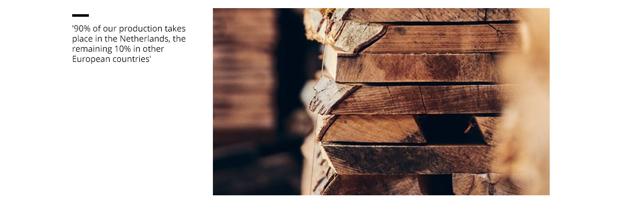 Our solid wood tables are a good example. These are 100% produced in the Netherlands.