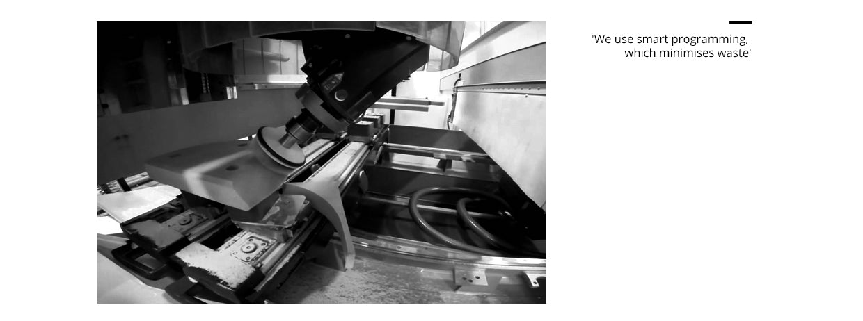 We use smart CNC programming which minimises waste. Production waste, such as leftover residues of tree trunks, wood and sawdust is reused for other purposes. The sawdust from logs is used as fuel for the drying ovens or compressed as a basis for pallets. Smaller and larger parts that are left over after selection and production of our furniture are used for the production of our 'Workplace Essentials' accessories. This makes every product unique.