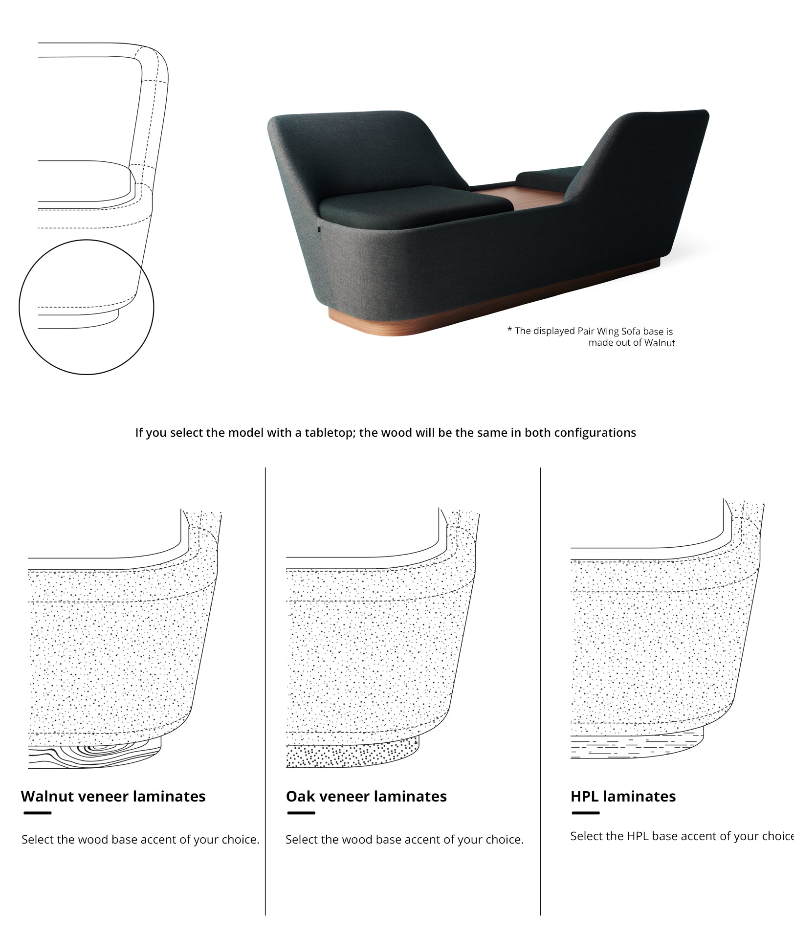 Kvadrat Fiord 0971 (frame) and have been finished with a high-quality Walnut veneer base and integrated table.