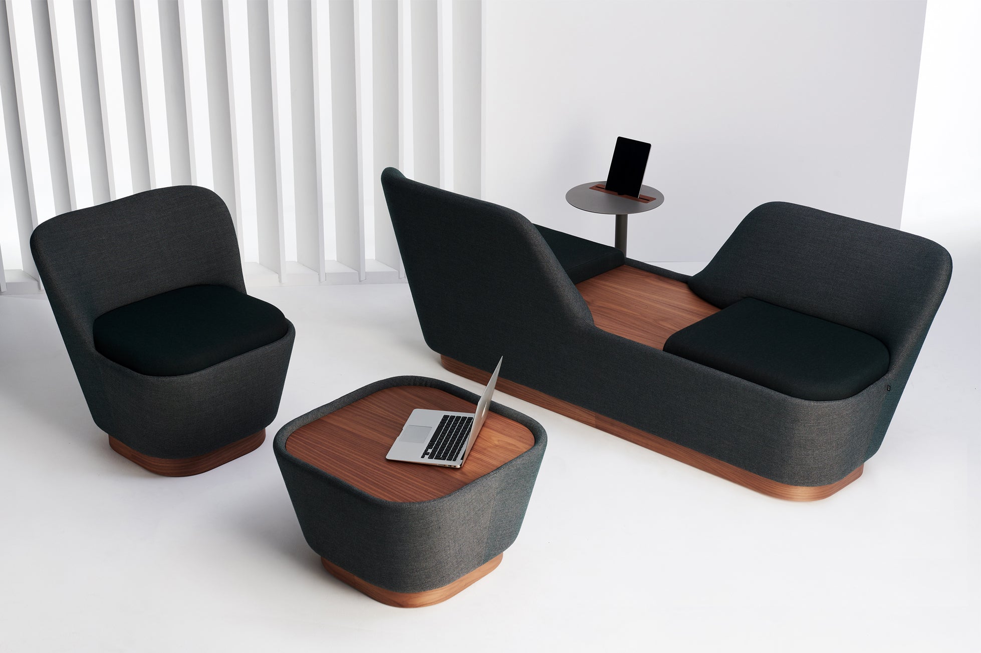 The Shuffle Modular Line offers various possibilities for interior architecture - The Shuffle models shown here are upholstered in Kvadrat Fiord 0991 (seat) and